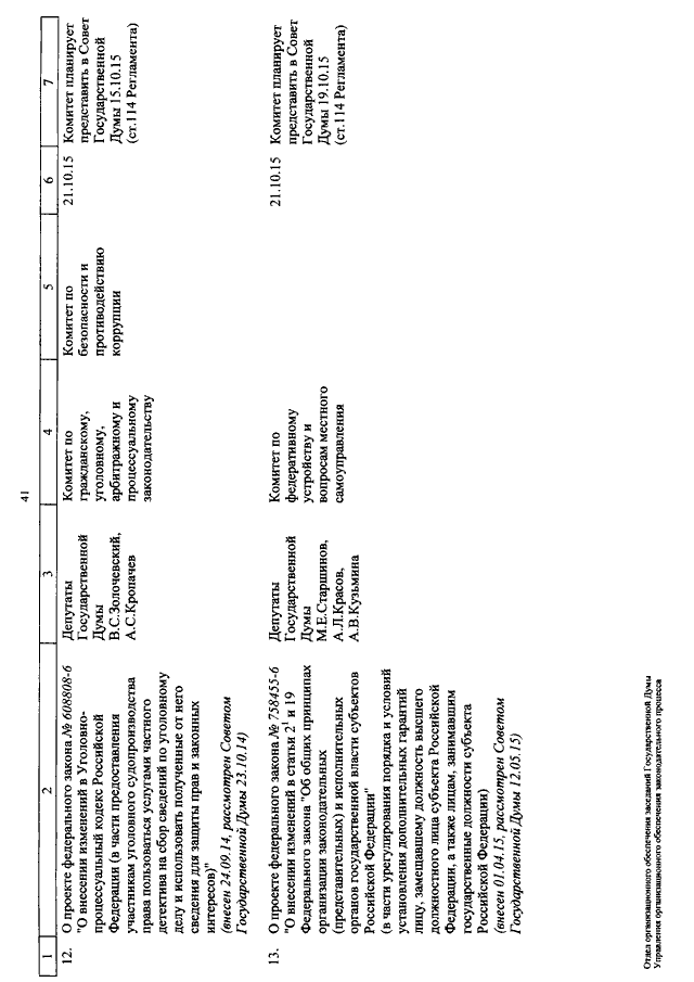 "О КАЛЕНДАРЕ РАССМОТРЕНИЯ ВОПРОСОВ ГОСУДАРСТВЕННОЙ ДУМОЙ С 13 ПО 23 ОКТЯБРЯ 2015 ГОДА"