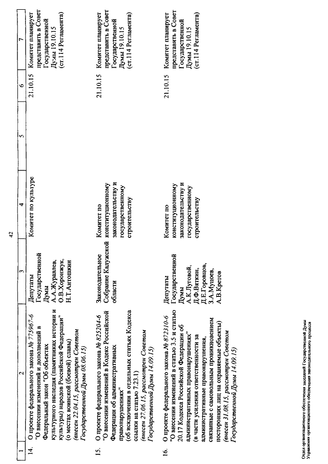 "О КАЛЕНДАРЕ РАССМОТРЕНИЯ ВОПРОСОВ ГОСУДАРСТВЕННОЙ ДУМОЙ С 13 ПО 23 ОКТЯБРЯ 2015 ГОДА"