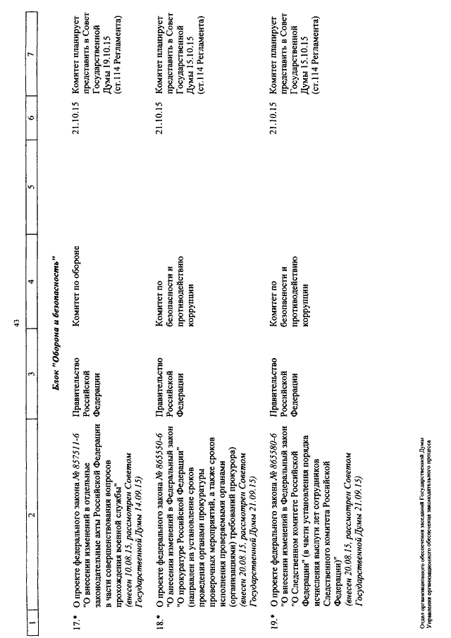 "О КАЛЕНДАРЕ РАССМОТРЕНИЯ ВОПРОСОВ ГОСУДАРСТВЕННОЙ ДУМОЙ С 13 ПО 23 ОКТЯБРЯ 2015 ГОДА"