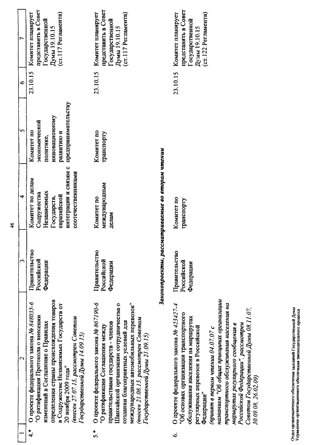 "О КАЛЕНДАРЕ РАССМОТРЕНИЯ ВОПРОСОВ ГОСУДАРСТВЕННОЙ ДУМОЙ С 13 ПО 23 ОКТЯБРЯ 2015 ГОДА"