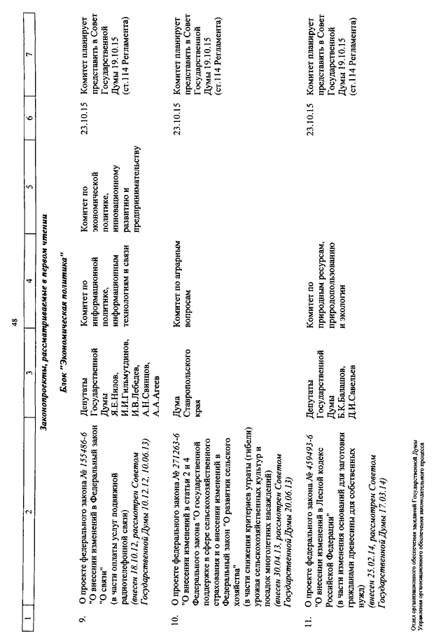 "О КАЛЕНДАРЕ РАССМОТРЕНИЯ ВОПРОСОВ ГОСУДАРСТВЕННОЙ ДУМОЙ С 13 ПО 23 ОКТЯБРЯ 2015 ГОДА"