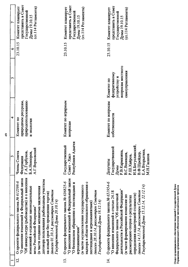 "О КАЛЕНДАРЕ РАССМОТРЕНИЯ ВОПРОСОВ ГОСУДАРСТВЕННОЙ ДУМОЙ С 13 ПО 23 ОКТЯБРЯ 2015 ГОДА"