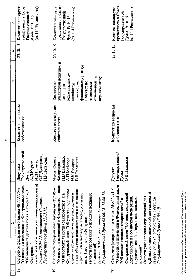 "О КАЛЕНДАРЕ РАССМОТРЕНИЯ ВОПРОСОВ ГОСУДАРСТВЕННОЙ ДУМОЙ С 13 ПО 23 ОКТЯБРЯ 2015 ГОДА"