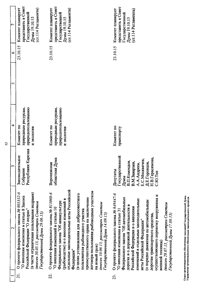 "О КАЛЕНДАРЕ РАССМОТРЕНИЯ ВОПРОСОВ ГОСУДАРСТВЕННОЙ ДУМОЙ С 13 ПО 23 ОКТЯБРЯ 2015 ГОДА"