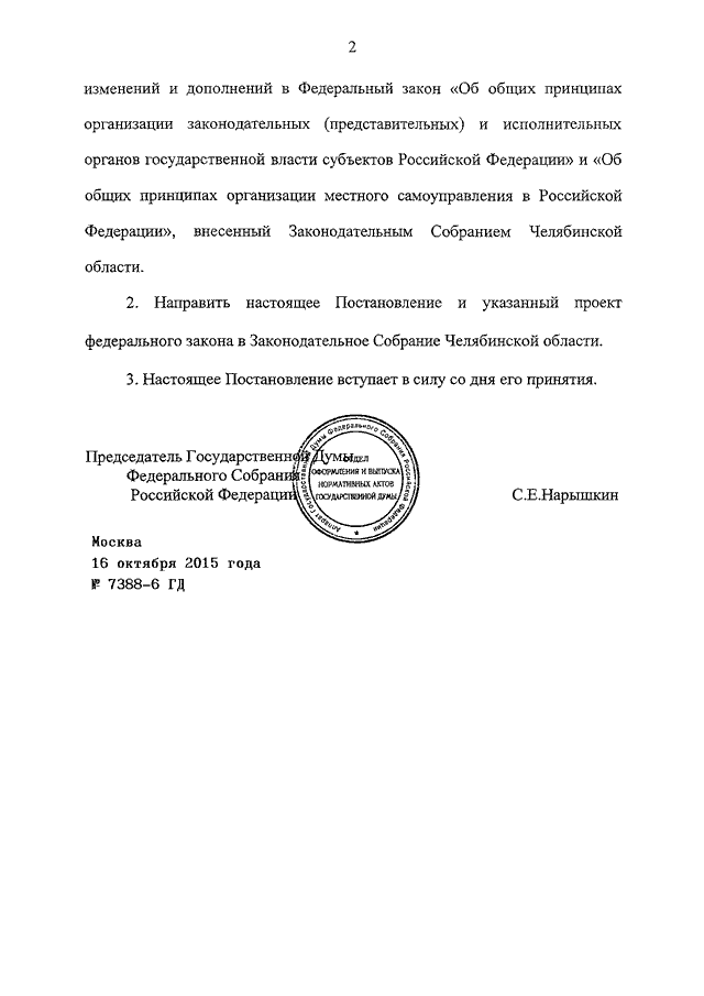 ПОСТАНОВЛЕНИЕ ГД ФС РФ от 16.10.2015 N 7388-6 ГД