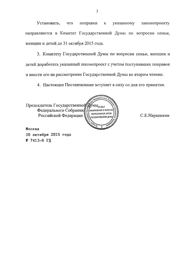 ПОСТАНОВЛЕНИЕ ГД ФС РФ от 20.10.2015 N 7413-6 ГД