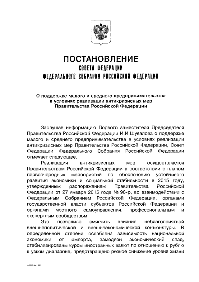 "О ПОДДЕРЖКЕ МАЛОГО И СРЕДНЕГО ПРЕДПРИНИМАТЕЛЬСТВА В УСЛОВИЯХ РЕАЛИЗАЦИИ АНТИКРИЗИСНЫХ МЕР ПРАВИТЕЛЬСТВА РОССИЙСКОЙ ФЕДЕРАЦИИ"