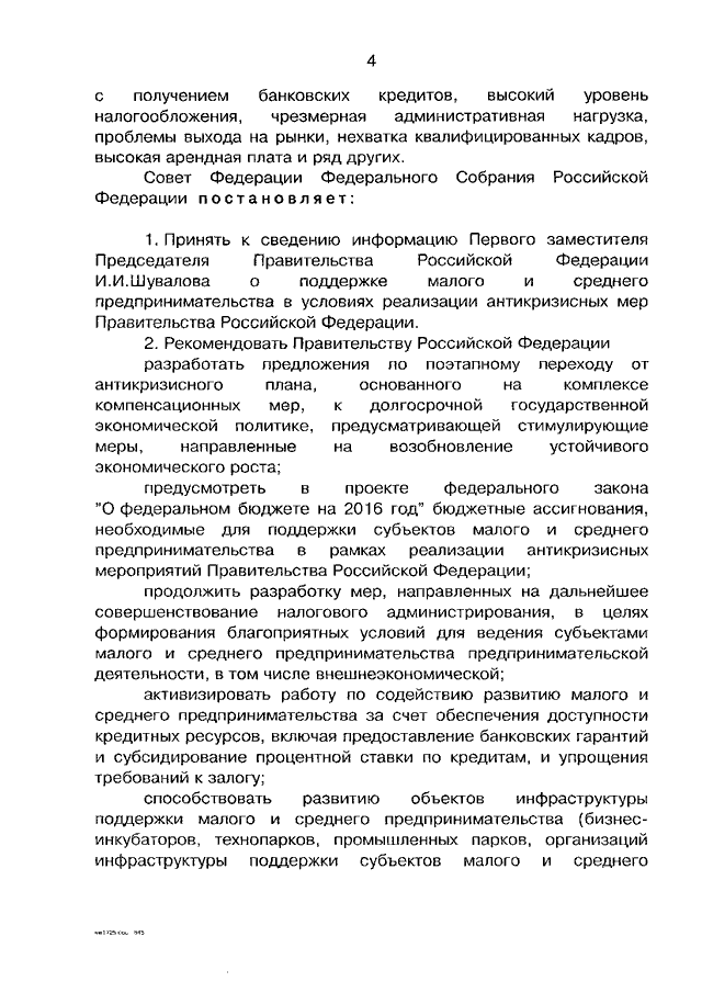 "О ПОДДЕРЖКЕ МАЛОГО И СРЕДНЕГО ПРЕДПРИНИМАТЕЛЬСТВА В УСЛОВИЯХ РЕАЛИЗАЦИИ АНТИКРИЗИСНЫХ МЕР ПРАВИТЕЛЬСТВА РОССИЙСКОЙ ФЕДЕРАЦИИ"