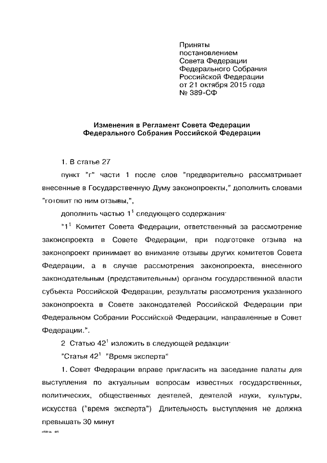 ПОСТАНОВЛЕНИЕ СФ ФС РФ от 21.10.2015 N 389-СФ
