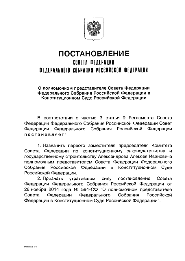 "О ПОЛНОМОЧНОМ ПРЕДСТАВИТЕЛЕ СОВЕТА ФЕДЕРАЦИИ ФЕДЕРАЛЬНОГО СОБРАНИЯ РОССИЙСКОЙ ФЕДЕРАЦИИ В КОНСТИТУЦИОННОМ СУДЕ РОССИЙСКОЙ ФЕДЕРАЦИИ"