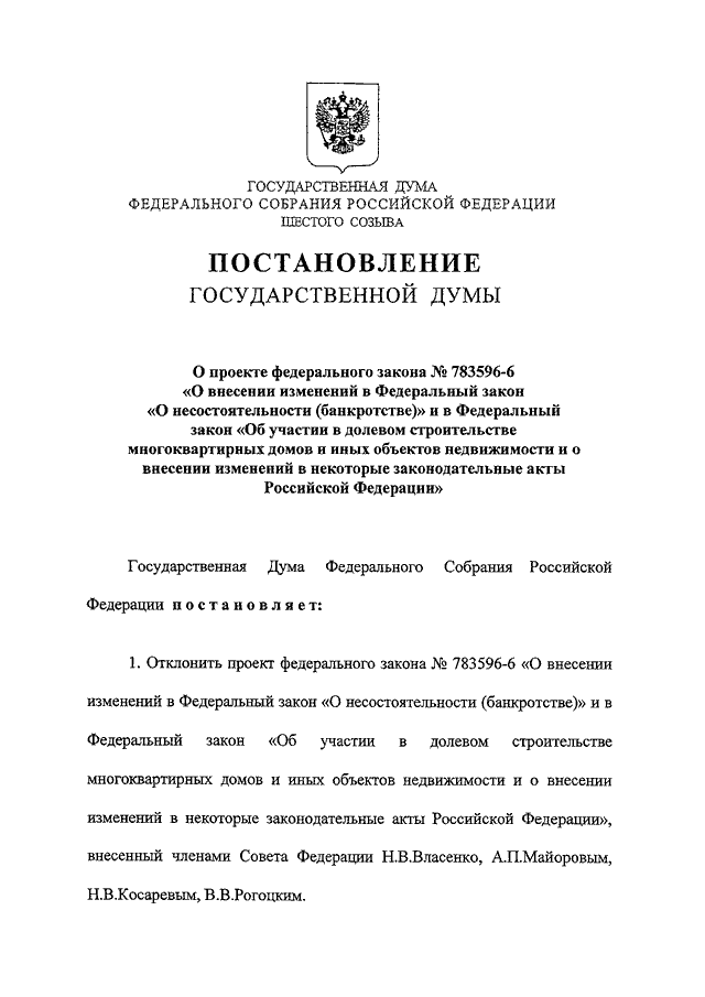 "О ПРОЕКТЕ ФЕДЕРАЛЬНОГО ЗАКОНА N 783596-6 "О ВНЕСЕНИИ ИЗМЕНЕНИЙ В