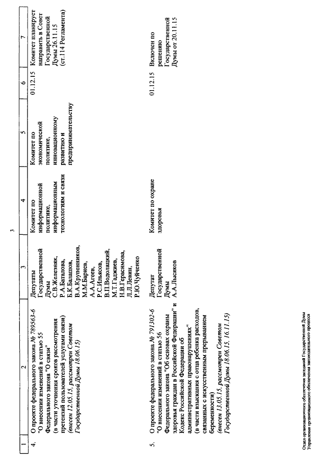 "О КАЛЕНДАРЕ РАССМОТРЕНИЯ ВОПРОСОВ ГОСУДАРСТВЕННОЙ ДУМОЙ С 1 ПО 23 ДЕКАБРЯ 2015 ГОДА"