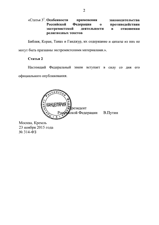 ФЕДЕРАЛЬНЫЙ ЗАКОН от 23.11.2015 N 314-ФЗ