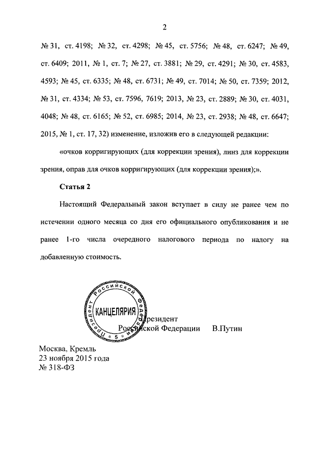 ФЕДЕРАЛЬНЫЙ ЗАКОН от 23.11.2015 N 318-ФЗ
