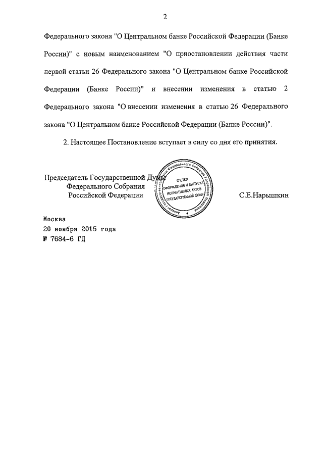 ПОСТАНОВЛЕНИЕ ГД ФС РФ от 20.11.2015 N 7684-6 ГД