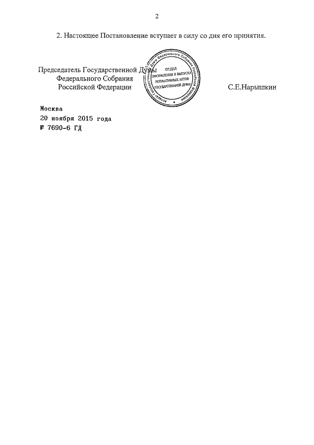 ПОСТАНОВЛЕНИЕ ГД ФС РФ от 20.11.2015 N 7690-6 ГД
