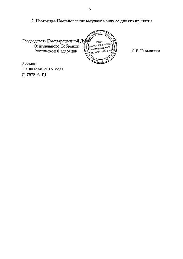 ПОСТАНОВЛЕНИЕ ГД ФС РФ от 20.11.2015 N 7678-6 ГД
