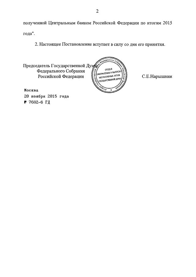 ПОСТАНОВЛЕНИЕ ГД ФС РФ от 20.11.2015 N 7682-6 ГД