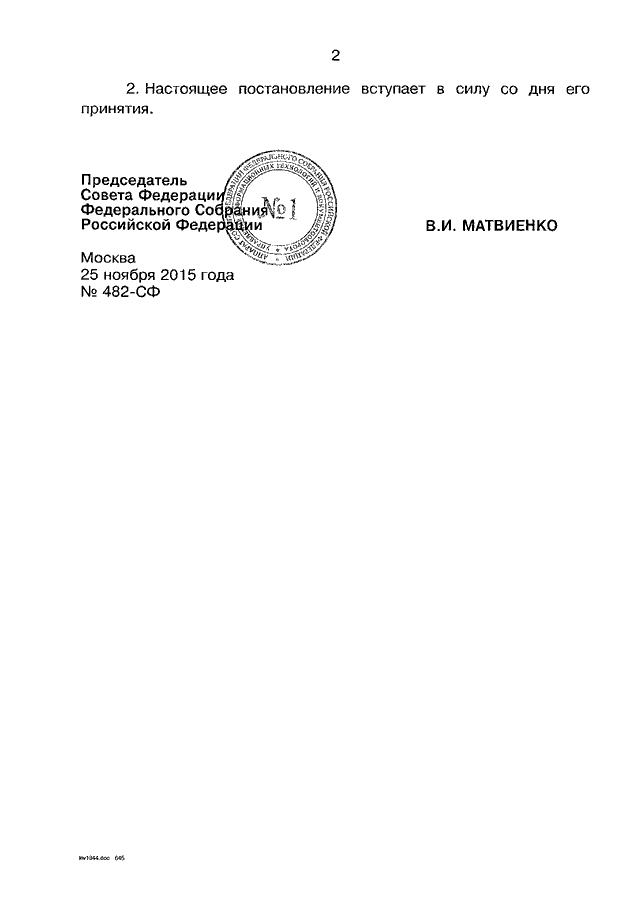 ПОСТАНОВЛЕНИЕ СФ ФС РФ от 25.11.2015 N 482-СФ