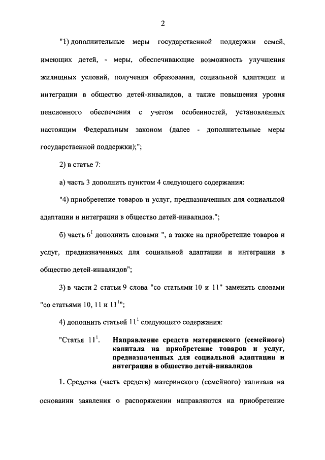 "О ВНЕСЕНИИ ИЗМЕНЕНИЙ В ФЕДЕРАЛЬНЫЙ ЗАКОН "О ДОПОЛНИТЕЛЬНЫХ МЕРАХ ГОСУДАРСТВЕННОЙ ПОДДЕРЖКИ СЕМЕЙ, ИМЕЮЩИХ ДЕТЕЙ"