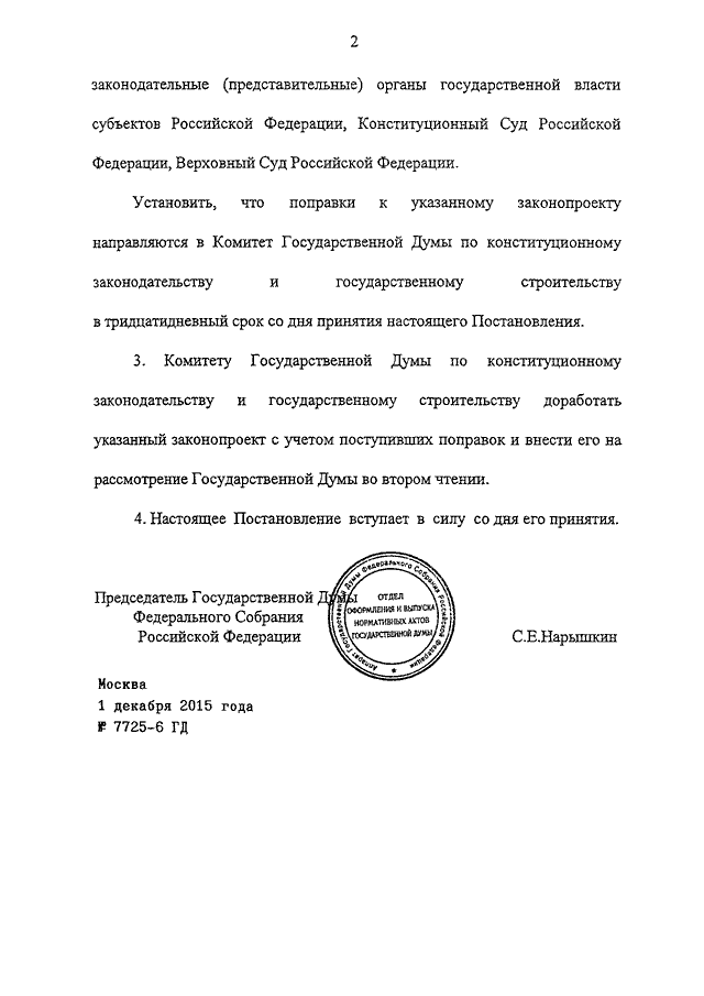 ПОСТАНОВЛЕНИЕ ГД ФС РФ от 01.12.2015 N 7725-6 ГД