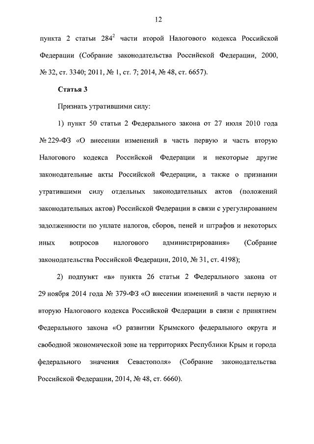 "О ВНЕСЕНИИ ИЗМЕНЕНИЙ В ЧАСТЬ ВТОРУЮ НАЛОГОВОГО КОДЕКСА РОССИЙСКОЙ ФЕДЕРАЦИИ"