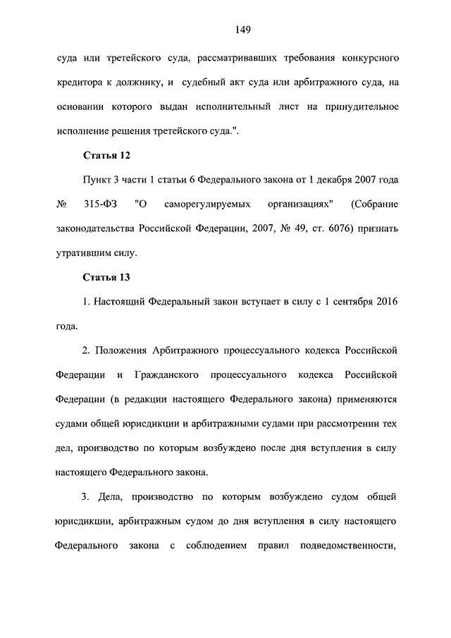 "О ВНЕСЕНИИ ИЗМЕНЕНИЙ В ОТДЕЛЬНЫЕ ЗАКОНОДАТЕЛЬНЫЕ АКТЫ РОССИЙСКОЙ ФЕДЕРАЦИИ И ПРИЗНАНИИ УТРАТИВШИМ СИЛУ ПУНКТА 3 ЧАСТИ 1 СТАТЬИ 6 ФЕДЕРАЛЬНОГО ЗАКОНА "О САМОРЕГУЛИРУЕМЫХ ОРГАНИЗАЦИЯХ" В СВЯЗИ С ПРИНЯТИЕМ ФЕДЕРАЛЬНОГО ЗАКОНА "ОБ АРБИТРАЖЕ (ТРЕТЕЙСКОМ РАЗБИРАТЕЛЬСТВЕ) В РОССИЙСКОЙ ФЕДЕРАЦИИ"