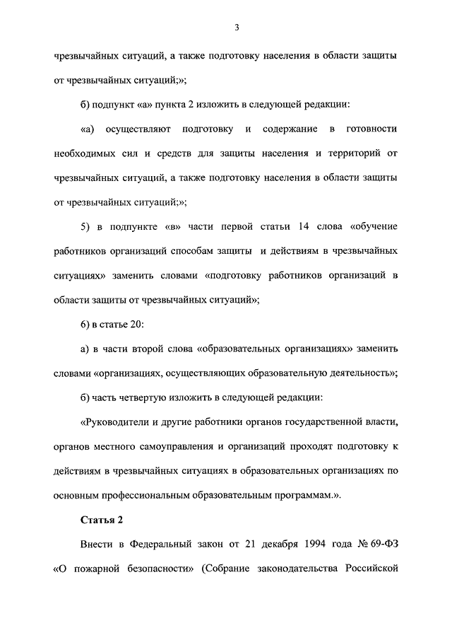 "О ВНЕСЕНИИ ИЗМЕНЕНИЙ В ОТДЕЛЬНЫЕ ЗАКОНОДАТЕЛЬНЫЕ АКТЫ РОССИЙСКОЙ ФЕДЕРАЦИИ ПО ВОПРОСАМ ОБЕСПЕЧЕНИЯ ПОЖАРНОЙ БЕЗОПАСНОСТИ, ПОДГОТОВКИ НАСЕЛЕНИЯ В ОБЛАСТИ ГРАЖДАНСКОЙ ОБОРОНЫ И ЗАЩИТЫ ОТ ЧРЕЗВЫЧАЙНЫХ СИТУАЦИЙ"