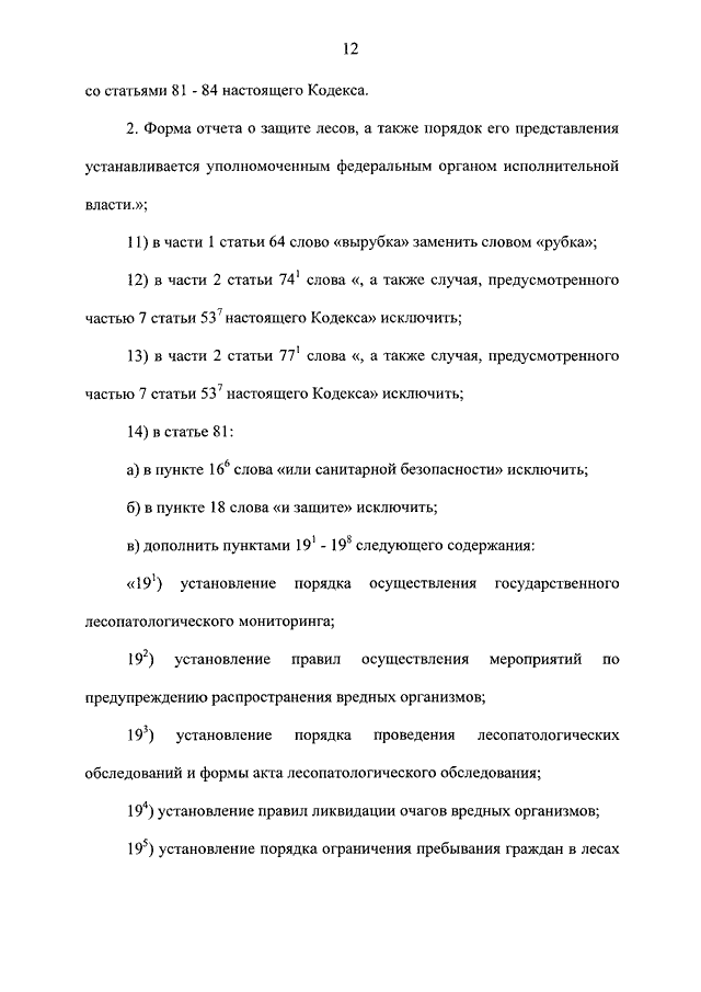 "О ВНЕСЕНИИ ИЗМЕНЕНИЙ В ЛЕСНОЙ КОДЕКС РОССИЙСКОЙ ФЕДЕРАЦИИ В ЧАСТИ СОВЕРШЕНСТВОВАНИЯ РЕГУЛИРОВАНИЯ ЗАЩИТЫ ЛЕСОВ ОТ ВРЕДНЫХ ОРГАНИЗМОВ"