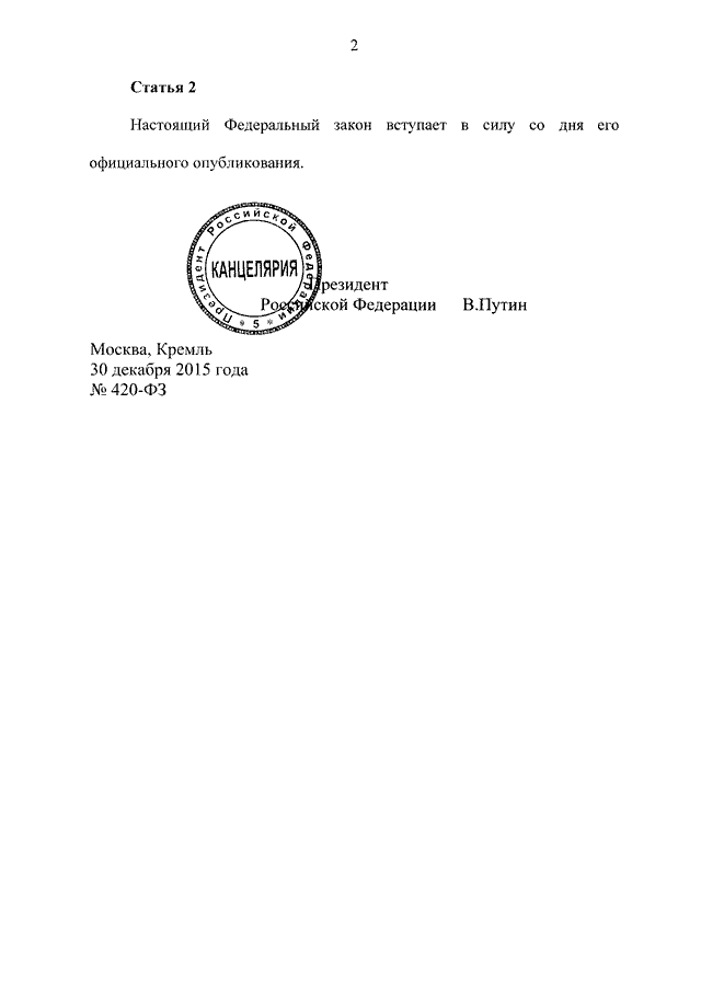 ФЕДЕРАЛЬНЫЙ ЗАКОН от 30.12.2015 N 420-ФЗ