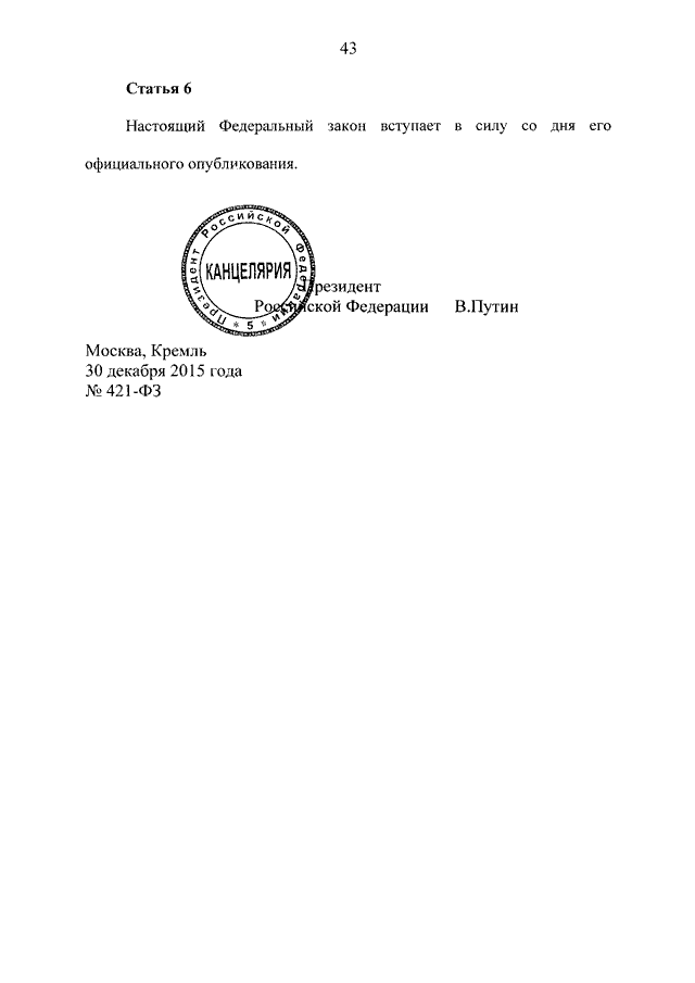ФЕДЕРАЛЬНЫЙ ЗАКОН от 30.12.2015 N 421-ФЗ