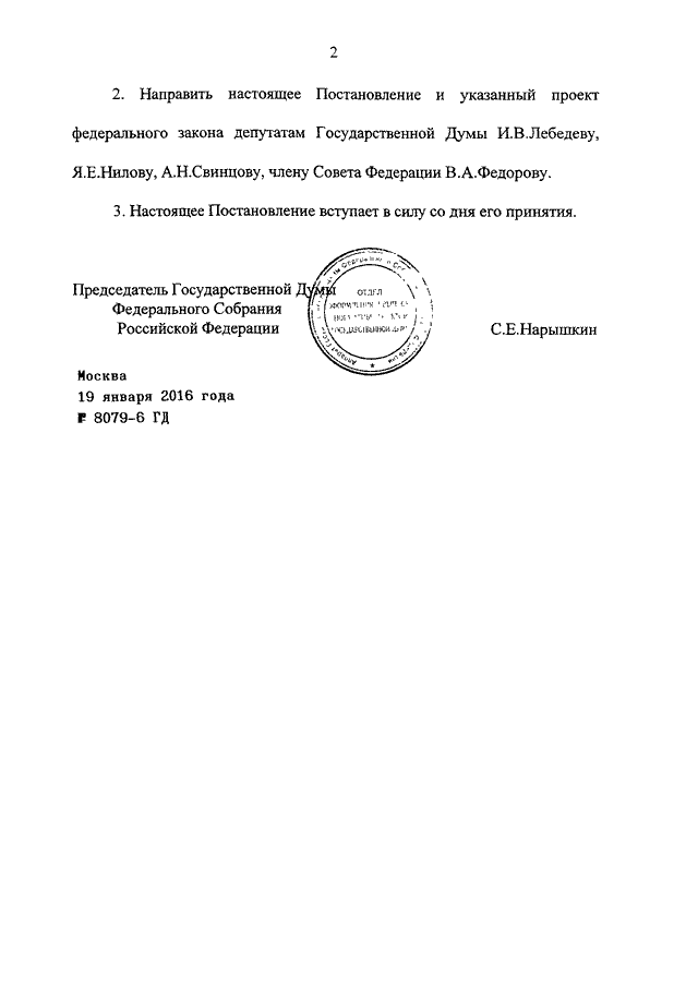 ПОСТАНОВЛЕНИЕ ГД ФС РФ от 19.01.2016 N 8079-6 ГД