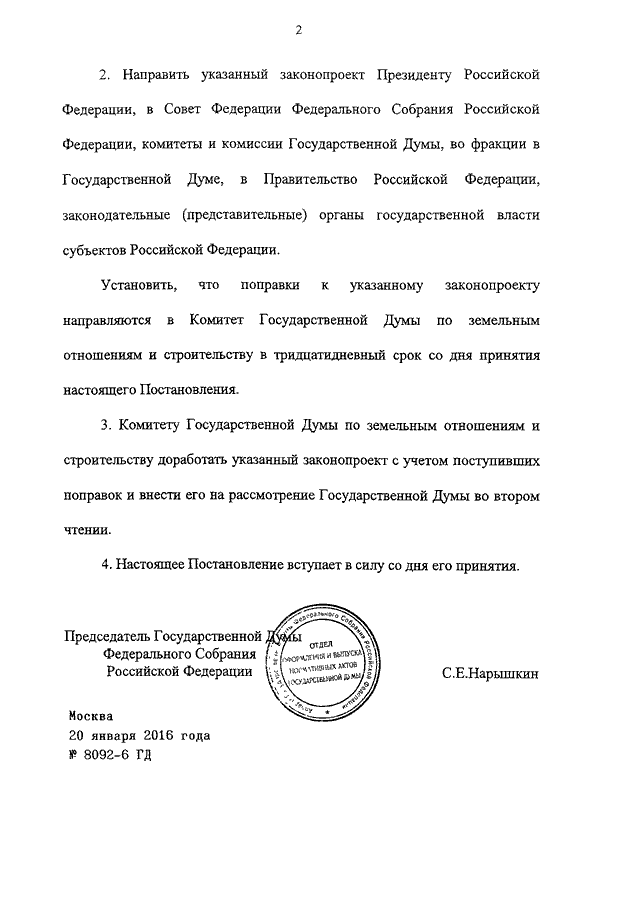 ПОСТАНОВЛЕНИЕ ГД ФС РФ от 20.01.2016 N 8092-6 ГД