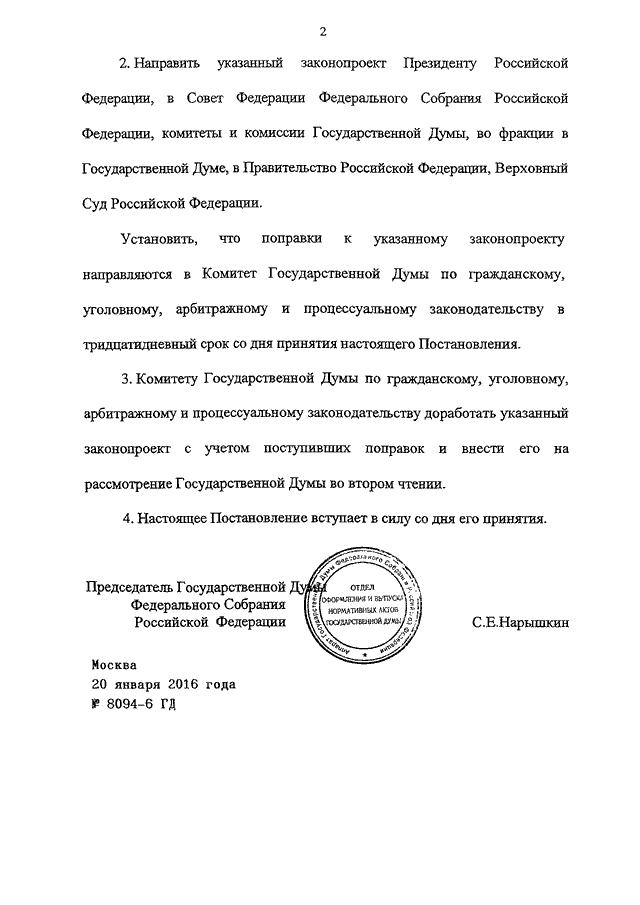 ПОСТАНОВЛЕНИЕ ГД ФС РФ от 20.01.2016 N 8094-6 ГД