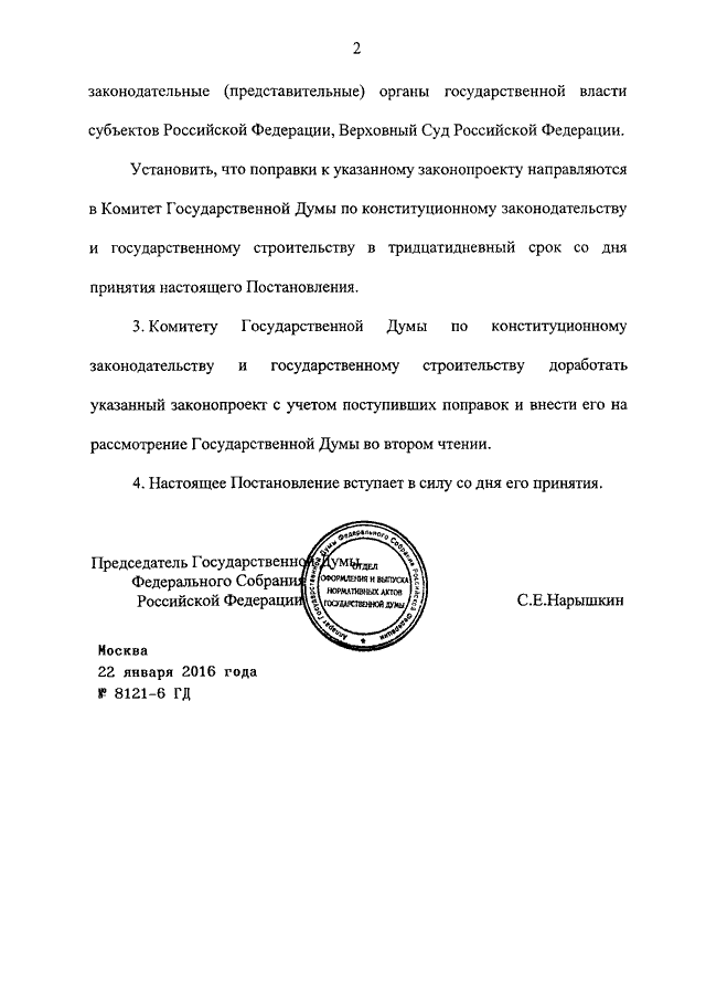 ПОСТАНОВЛЕНИЕ ГД ФС РФ от 22.01.2016 N 8121-6 ГД
