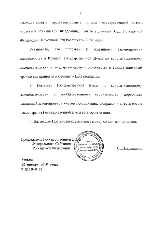 ПОСТАНОВЛЕНИЕ ГД ФС РФ от 22.01.2016 N 8119-6 ГД