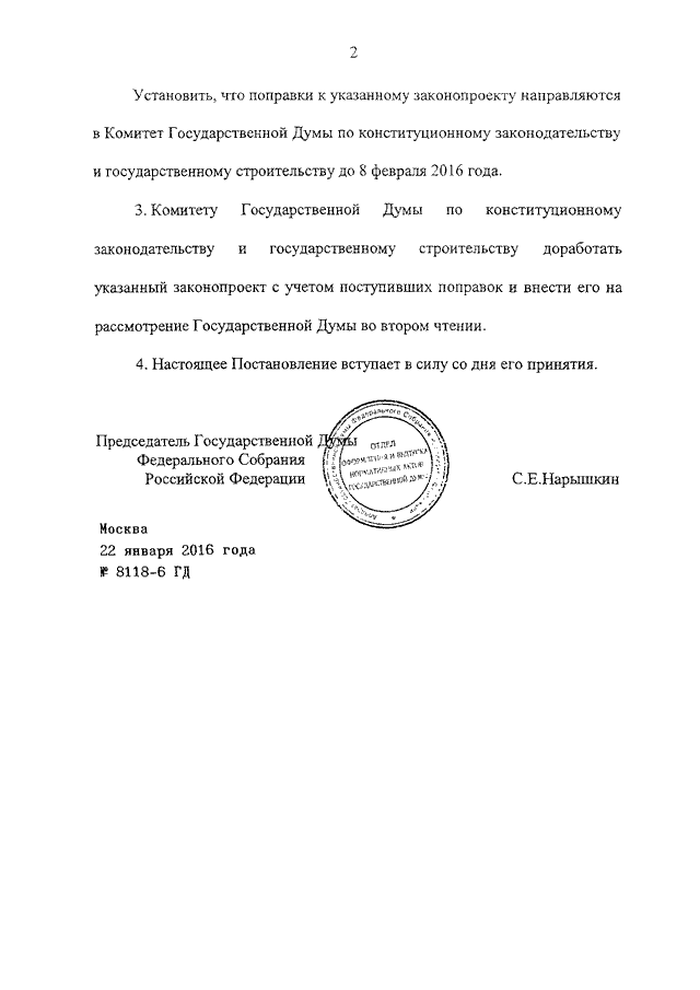 ПОСТАНОВЛЕНИЕ ГД ФС РФ от 22.01.2016 N 8118-6 ГД