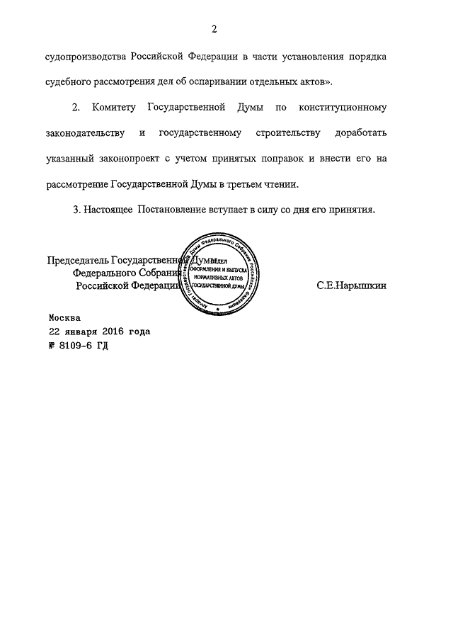 ПОСТАНОВЛЕНИЕ ГД ФС РФ от 22.01.2016 N 8109-6 ГД
