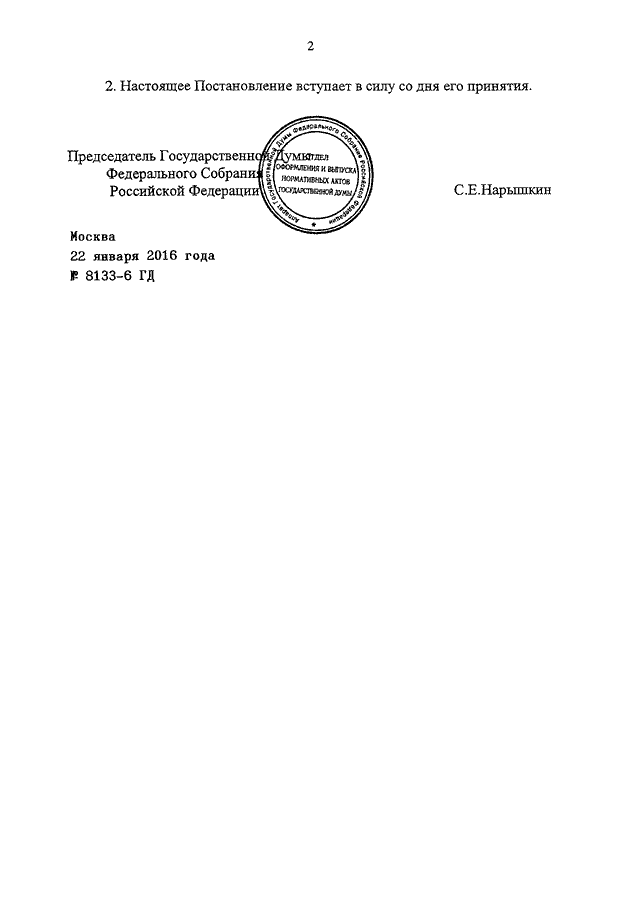 ПОСТАНОВЛЕНИЕ ГД ФС РФ от 22.01.2016 N 8133-6 ГД