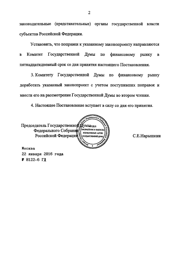 ПОСТАНОВЛЕНИЕ ГД ФС РФ от 22.01.2016 N 8122-6 ГД