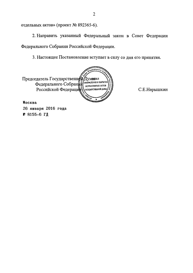 ПОСТАНОВЛЕНИЕ ГД ФС РФ от 26.01.2016 N 8155-6 ГД
