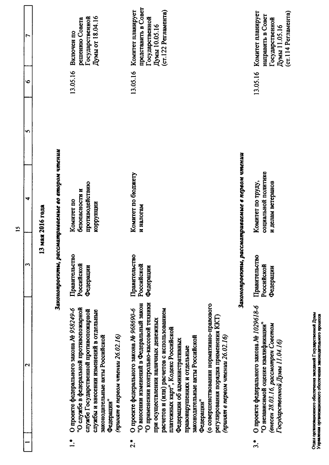 "О КАЛЕНДАРЕ РАССМОТРЕНИЯ ВОПРОСОВ ГОСУДАРСТВЕННОЙ ДУМОЙ С 10 ПО 20 МАЯ 2016 ГОДА"