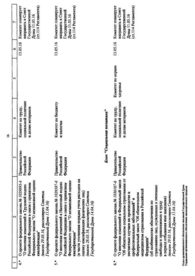 "О КАЛЕНДАРЕ РАССМОТРЕНИЯ ВОПРОСОВ ГОСУДАРСТВЕННОЙ ДУМОЙ С 10 ПО 20 МАЯ 2016 ГОДА"