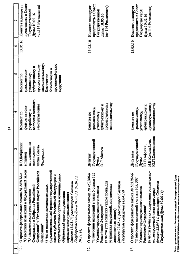"О КАЛЕНДАРЕ РАССМОТРЕНИЯ ВОПРОСОВ ГОСУДАРСТВЕННОЙ ДУМОЙ С 10 ПО 20 МАЯ 2016 ГОДА"
