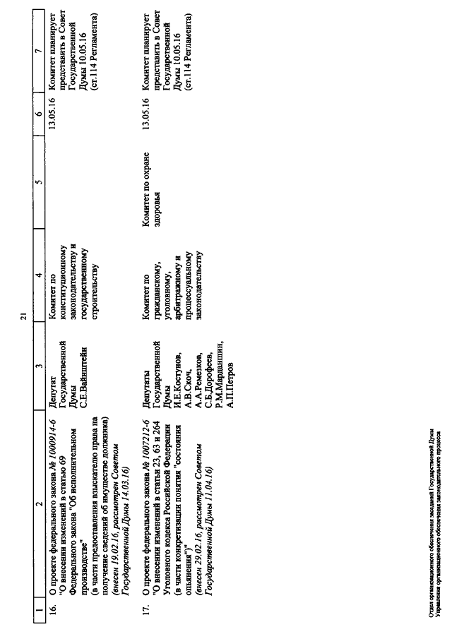 "О КАЛЕНДАРЕ РАССМОТРЕНИЯ ВОПРОСОВ ГОСУДАРСТВЕННОЙ ДУМОЙ С 10 ПО 20 МАЯ 2016 ГОДА"