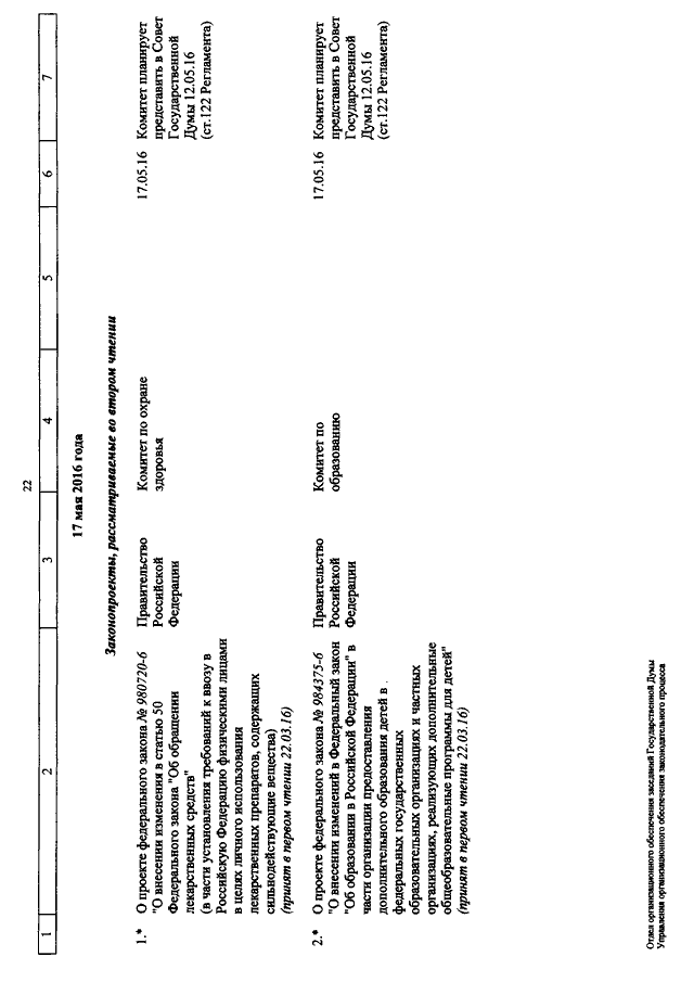 "О КАЛЕНДАРЕ РАССМОТРЕНИЯ ВОПРОСОВ ГОСУДАРСТВЕННОЙ ДУМОЙ С 10 ПО 20 МАЯ 2016 ГОДА"