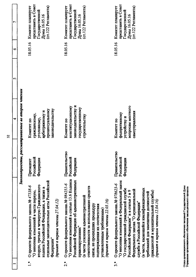 "О КАЛЕНДАРЕ РАССМОТРЕНИЯ ВОПРОСОВ ГОСУДАРСТВЕННОЙ ДУМОЙ С 10 ПО 20 МАЯ 2016 ГОДА"