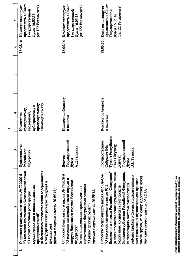 "О КАЛЕНДАРЕ РАССМОТРЕНИЯ ВОПРОСОВ ГОСУДАРСТВЕННОЙ ДУМОЙ С 10 ПО 20 МАЯ 2016 ГОДА"