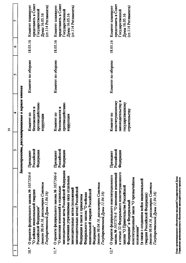"О КАЛЕНДАРЕ РАССМОТРЕНИЯ ВОПРОСОВ ГОСУДАРСТВЕННОЙ ДУМОЙ С 10 ПО 20 МАЯ 2016 ГОДА"