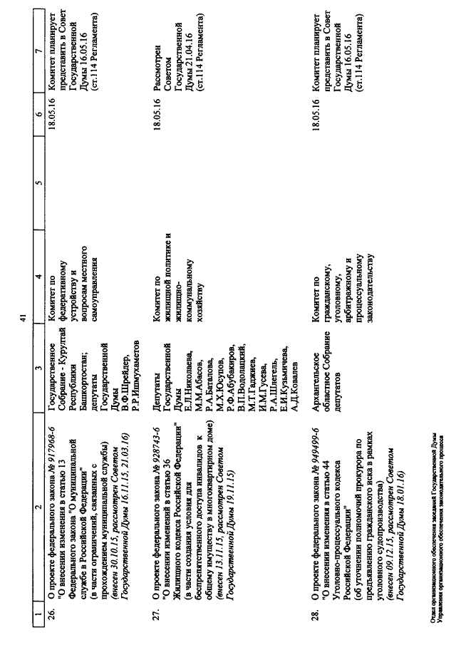 "О КАЛЕНДАРЕ РАССМОТРЕНИЯ ВОПРОСОВ ГОСУДАРСТВЕННОЙ ДУМОЙ С 10 ПО 20 МАЯ 2016 ГОДА"